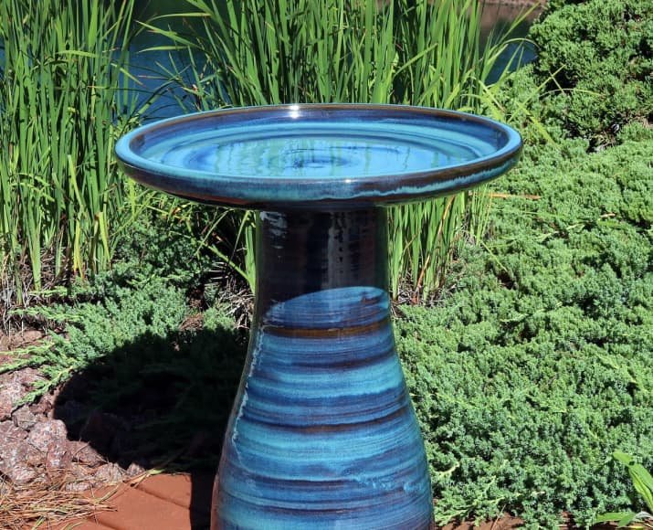 Welcome your neighborhood feathery friends to your yard with Sunnydaze Decor Elegant Outdoor Ceramic Bird Bath. Made of hand-painted glazed ceramic, this birdbath is a beautiful and vibrant addition to your outdoor living spaces.