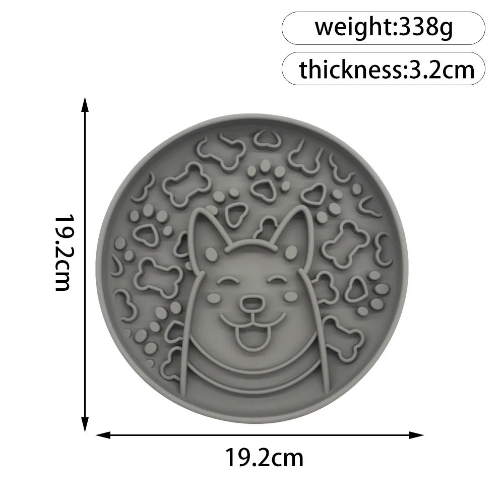 Make mealtime calmer and more fun with our Round Silicone Dog Slow Feeder. The raised paw-and-bone pattern slows down eating, reduces anxiety, and keeps your dog engaged during baths, grooming, or crate time. Made from BPA-free, food-grade silicone, this non-slip lick mat sticks to smooth surfaces and cleans easily. Perfect for peanut butter, yogurt, wet food, and treats.